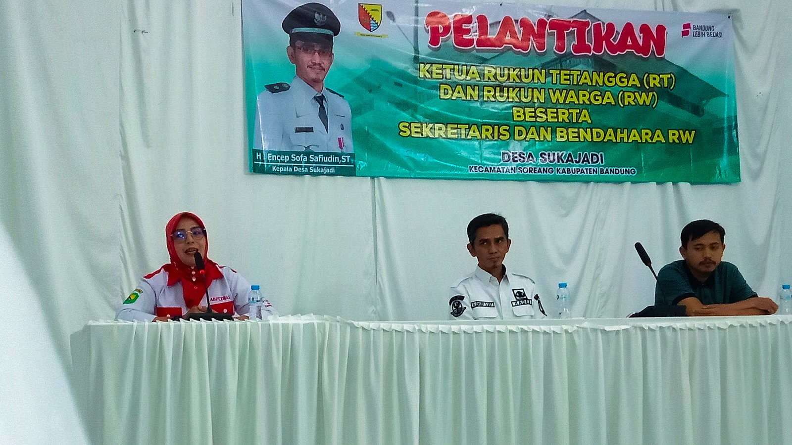 Pelantikan RT dan RW ini sudah dimulai sejak pukul 13.00 WIB sesuai dengan jadwal. Acara berjalan tertib dengan beberapa sambutan dari kepala Desa Sukajadi, Ketua BPD Desa Sukajadi, dan Kaur Pemerintahan Kecamatan Soreang. Lalu pembacaan sumpah kesiapan oleh Kepala Desa Sukajadi serta di tutup do’a oleh ketua MUI Desa Sukajadi. Dalam sambutannya, Kepala Desa Sukajadi menekankan perlunya rasa ikhlas dan ridho dalam mengemban tugas. Lebih mengedepankan kepentingan warga daripada pribadi serta pentingnya nilai kejujuran, keadilan dan transparansi.